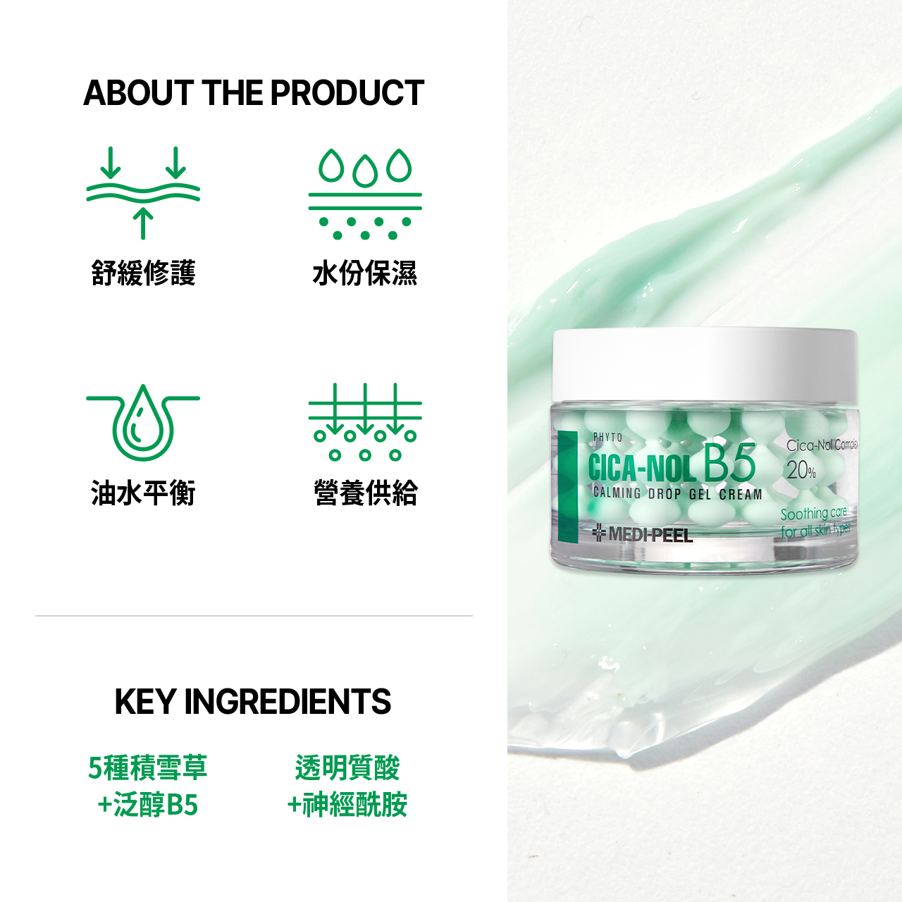 水、積雪草提取物(213,369 ppm)、甘油、辛酸/癸酸甘油三酯、二丙二醇、1,2-己二醇、煙酰胺、乳木果油、角鯊烷、甘油葡糖苷、聚二甲基矽氧烷、卡波姆、氨丁三醇、丙二醇、聚甘油- 10 月桂酸酯、聚甘油-2 硬脂酸酯、花生醇、丙烯酰-二甲基牛磺酸銨/VP 共聚物、硬脂酸甘油酯、鯨蠟硬脂醇、硬脂醇、二十二醇、乙基己基甘油、花生基葡糖苷、印楝葉提取物、C12-16 醇、棕櫚酸、腺苷 , 氫化卵磷脂, 印楝花提取物, 泛醇 (232 ppm), Coccinia Indica 果實提取物, 黃原膠, Solanum Melongena (茄子) 果實提取物, 琥珀粉, 薑黃 (薑黃) 根提取物, 羅勒葉提取物, 羥基積雪草甙 (23 ppm)、珊瑚提取物、辣木籽油、庫拉索蘆薈花提取物、西蒙得木(荷荷巴)籽油、羥基積雪草酸 (2 ppm)、積雪草酸 (2 ppm) , 積雪草苷 (2 ppm), 山茶花提取物, 酵母菌/大米發酵濾液, 梅子果實提取物, 梨果提取物, 番木瓜 (番木瓜) 果實提取物, 葡萄 (葡萄) 果實提取物, 硬脂酸, 丁二醇、透明質酸鈉交聯聚合物、水解糖胺聚醣、透明質酸鈉、芐基乙二醇、神經酰胺 NP、水解透明質酸、神經酰胺 NS、氯化鎂、膽固醇、棕櫚酰三肽-5、植物鞘氨醇、十四烷基氨基丁酰戊氨基丁酸脲三氟氨基丁酰基二氫乙酸、棕櫚酰氨基二肽-5 神經酰胺 AP、神經酰胺 AS、透明質酸、神經酰胺 EOP、香料